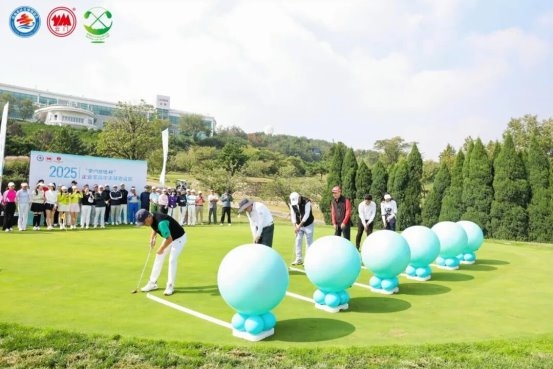 在热烈的掌声中,伟东集团董事长、青岛市社会组织总会会长王端瑞,青岛市高尔夫球协会名誉会长刘学敏,皓翔高尔夫董事长、青岛市社会组织总会秘书长成晓,青岛湖南商会会长、青岛市社会组织总会副会长刘文,青岛辽宁商会会长徐庆欣,以及山东云门酒业股份有限公司总经理助理、青岛大区总经理张万斌,共同为本次邀请赛启动开球。